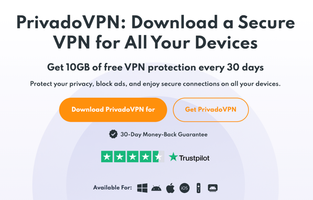 PrivadoVPNHigh privacy standards1210GBYesNoFast1Email Support