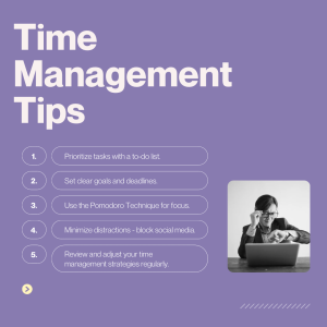 Effective time management strategies include: