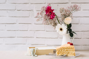 A vanilla cake paired with a bouquet of red roses is a classic choice that never goes out of style. The simplicity of the vanilla flavor, with its creamy texture, complements the rich and passionate red roses, symbolizing love and romance.