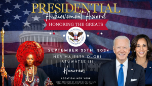 Her Royal Majesty, the Olori of Warri Kingdom, has been honored with the prestigious US Presidential Lifetime Achievement Award for her lifelong dedication to strengthening communities through service. She also received a Citation from Assemblyman Michael Benedetto. The ceremony took place in the Bronx, New York, on September 26th, 2024.. Following the award presentation, her upcoming event was featured on Times Square for several hours. Listen to her heartfelt response to the community for this esteemed recognition.