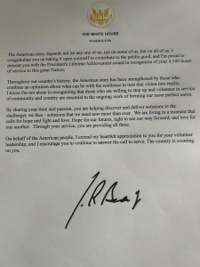 In a letter, US President Joe Biden wrote “on behalf of the American people, I extend my heartfelt appreciation to you for your volunteer leadership and I encourage you to continue to answer the call to serve. The country is counting on you.”