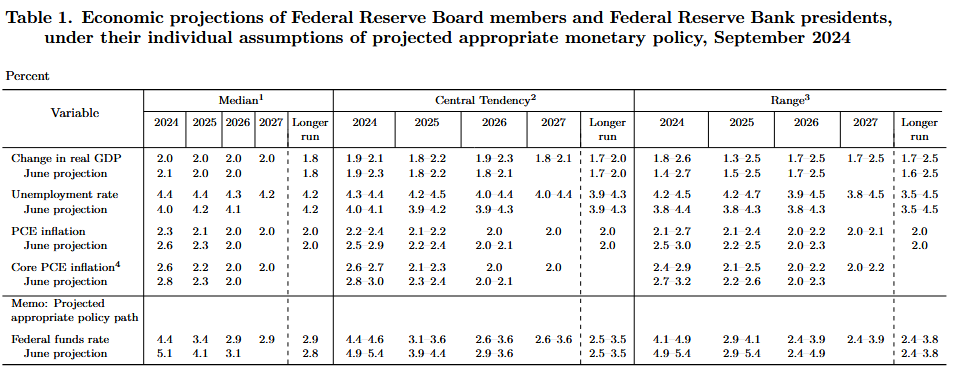 Aside from the unemployment rate, the Federal Reserve also lowered its inflation and federal funds rate projections at the September meeting. Both PCE and core PCE inflation were revised down for 2024 and 2025, with the inflation target expected to be reached by early 2026, according to projections. Despite the downward revision in inflation and the upward revision in unemployment, GDP estimates remain steady at 2% for 2025, 2026, and 2027.